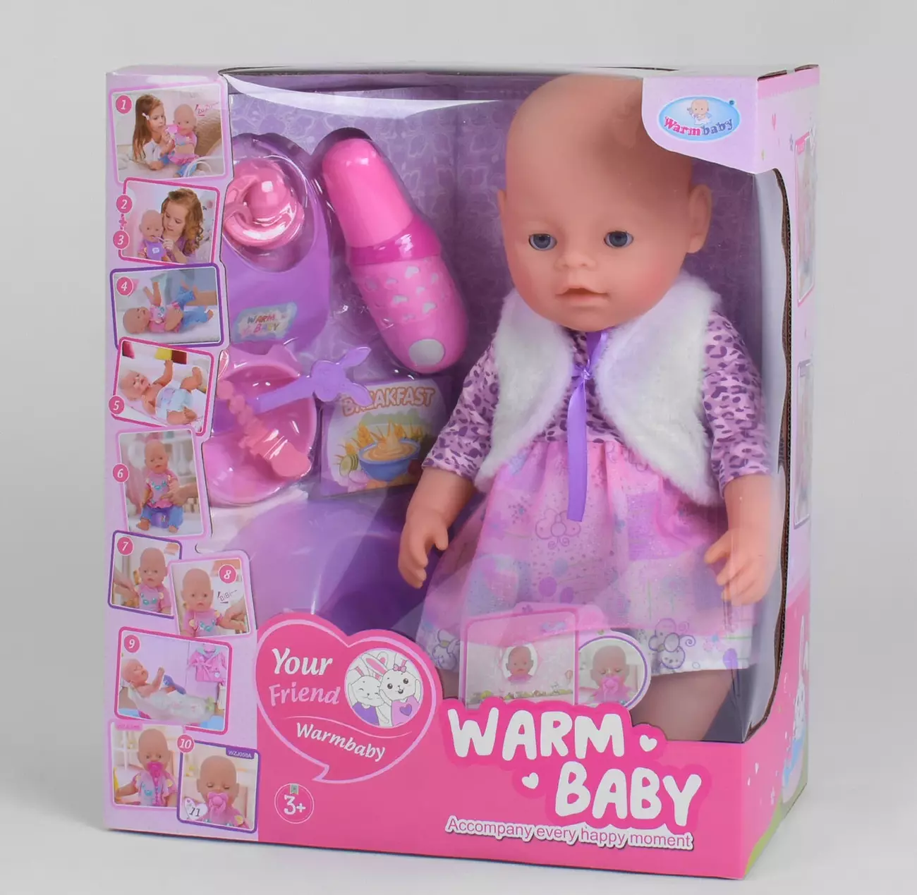 Фотография 1 товарной позиции интернет-магазина детских игрушек www.smarttoys.com.ua Пупс функціональний WZJ 058 A-585 (8/2) 10 функцій, ходить в туалет, їсть, обладнаний пискавкою, з аксесуарами, в коробці