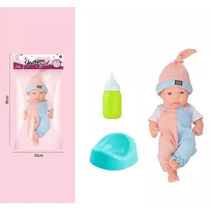 Ляльковий малюк з витонченими рисами обличчя та реалістичними блакитними очима. Завдяки своїм компактним розмірам, він легко поміститься, як в руках дівчинки, та і в прогулянковий візочок. Іграшковий малюк має рухливі ручки та ніжки, тож він легко прийме будь-яке положення. Лялька вдягнена у кольоровий комбінезон та шапочку, які за бажанням можна легко зняти. До комплекту входить пляшечка для годування та горщик. Особливості: - пупс з витонченими рисами обличчя; - блакитні реалістичні очі; - рухливі ручки, ніжки та голова; - одягнений у кольоровий комбінезончик та шапочку; - тіло пупса виготовлено з пластику, а голова - з гуми; - висота ляльки - 26 см. Комплектація: - пляшка; - горщик.