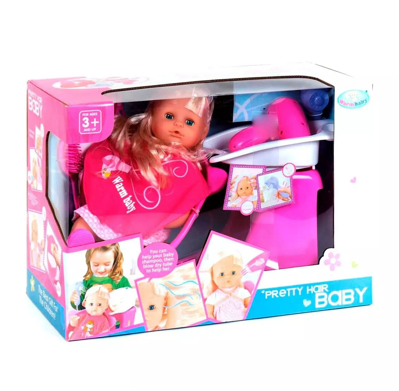 Набор состоит из пупса и аксессуаров для игры в парикмахера. В