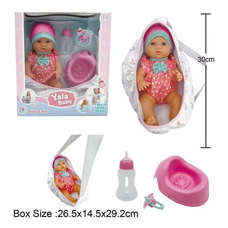 Пупс YL 2430 H-A (24) висота 30 см, п`є з пляшечки, ходить на горщик, сумка-переноска, знімний одяг, горщик, пустушка, пляшечка, в коробці
