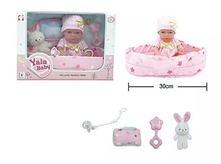 Пупс YL 2512 D-G (24) гумовий, висота 30 см, кокон з ручками, подушечка, брязкальце, пустушка, в коробці