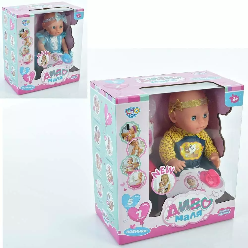 Пупс YL2235D-J-DM-UA п'є-пісяє, горщик, пляшка, соска, підгузки, 2 види, кор., 29,5-26,5-14,5 см.