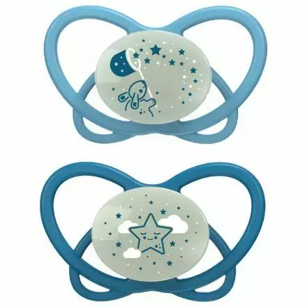 Пустушка "Мій метелик НІЧ" Синій (силікон) 0 - 6 місяців (2шт. + футляр-стерилізатор)