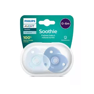 Пустышка для мальчика Philips Avent Soothie разработана с учетом строения и естественного развития неба, зубов и десен ребенка.