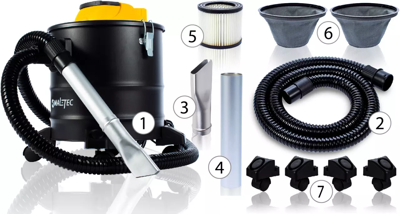 Шланг с алюминиевым покрытием, устойчивый к высоким температурам, позволяет всасывать теплую (но не тлеющую) золу. Алюминиевое покрытие не снижает его гибкости, поэтому мы можем эксплуатировать его как обычный шланг.