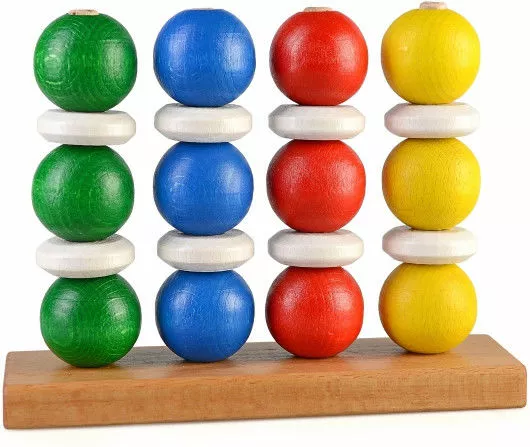 моторики, внимания и логики. На четырех штырьках, прикрепленных к