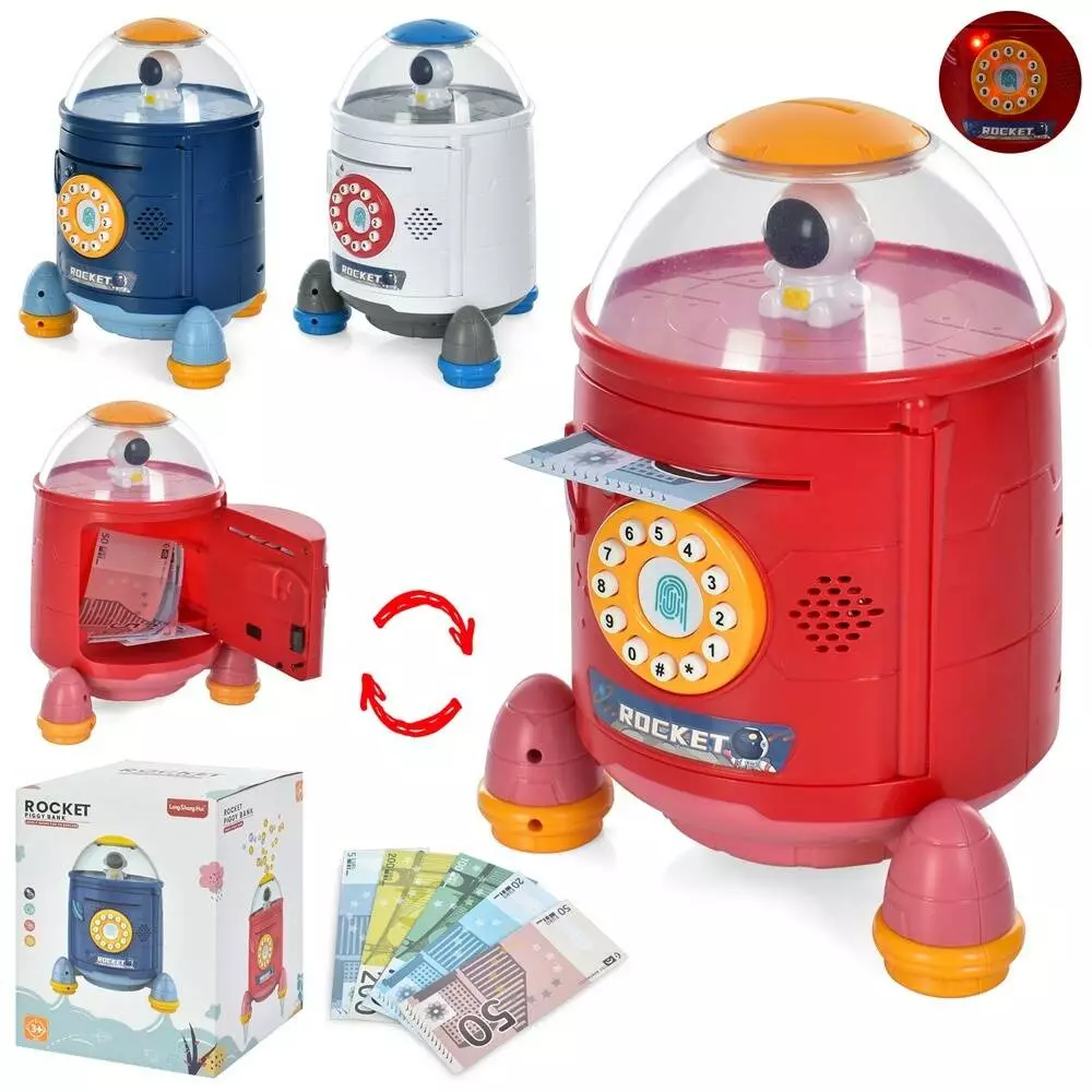 Ракета-скарбничка 589-15B-16B-17B затягує купюри,3кольори,муз.(анг.),світло,бат.,кор.,19-25-20см.