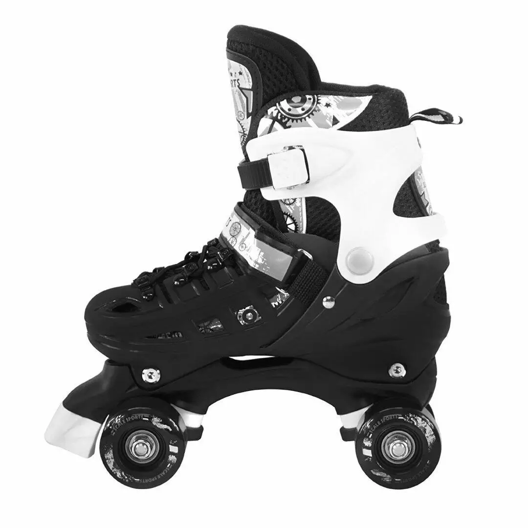 <p><strong>Описание</strong></p><br /> <p><em>Выбор роликовых коньков — дело не сложное. Главное знать свой размер ноги и то, какую именно модель хочешь приобрести: линейную или парную. С первой всё более ли менее понятно, такие ролики найдутся в магазинах любого города. А где искать вторые? Именно в нашей оптовой компании SportDrive.com.ua появились парные раздвижные роликовые коньки квады извесного американского бренда <strong>Scale Sports</strong>. Яркие ретро-ролики в уникальном черном цвете подойдут как детям, так и взрослым!</em></p><br /> <p><strong><em>Особенности:</em></strong></p><br /> <ul><br /> <li>Как следует из названия, у роликов 4 колеса, расположенные попарно</li><br /> <li>Ролики оснащены передним тормозом, расположенным под пальцами</li><br /> <li>Вариант застежки четырыхколесных роликовых коньков, так же удобен как и у классических роликовых коньков</li><br /> <li>Имеют форму полуботинок, как у стандартных роликовых коньков (до середины голени)</li><br /> <li>черный цвет, колеса полиуритановые. не пластик!</li><br /> </ul><br /> <p><strong><em>Характеристики:</em></strong></p><br /> <ul><br /> <li>Регулируемые ролики</li><br /> <li>стелька 18-20,5 см </li><br /> <li>Полумягкая оболочка из синтетического материала (полиуретана)</li><br /> <li>Внутренняя часть изготовлена из двойной пенки (профилированная)</li><br /> <li>3-уровневые застёжки: пряжка, ремень и шнуровки</li><br /> <li>Безключевое изменение размера</li><br /> <li>Подшипники ABEC 7 Carbon</li><br /> <li>Колеса:<strong> ПУ(полиуритан, не пластик, при езде не тарабанят!)</strong></li><br /> <li>Твёрдость: 82a</li><br /> <li>Тормоз: Передний</li><br /> <li>Ботинок EVP-Soft max , мягкий и удобный</li><br /> <li>Система циркуляции воздуха.</li><br /> </ul><br />