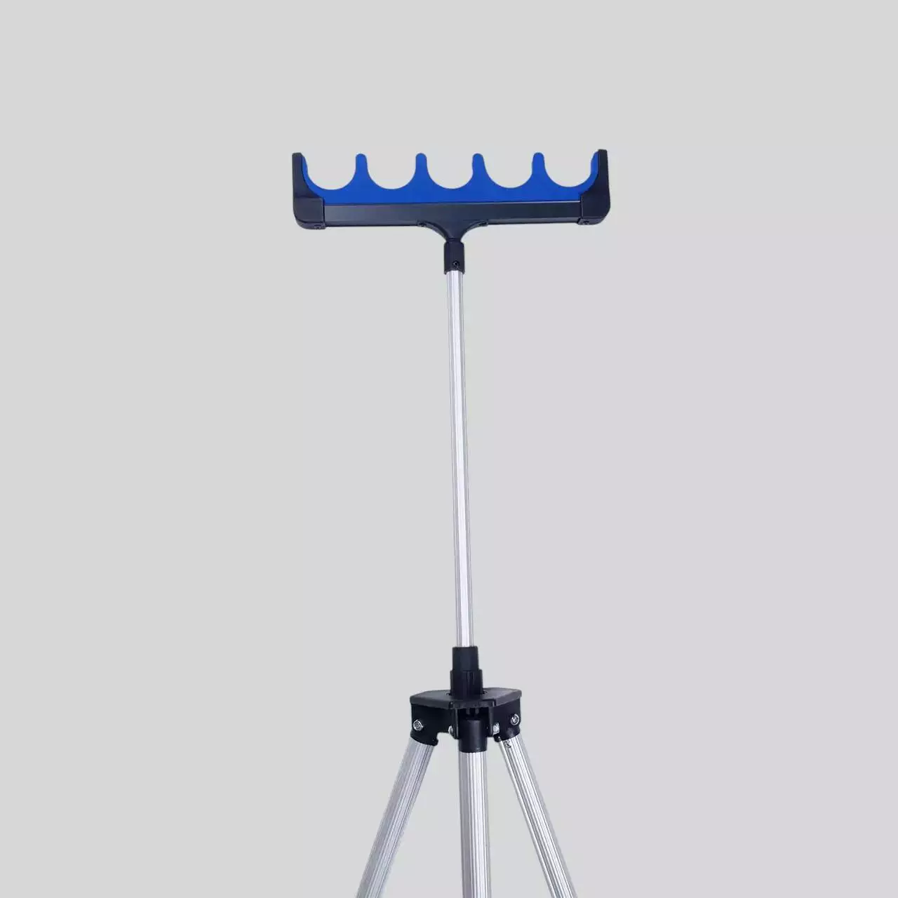 Регульована тренога-підставка стійкої конструкції, призначена для фідерного або карпового удилища. Висота ніжок регулюється від 58 до 155 см, що дозволяє встановити її на будь-якому типі поверхні: піску, гравії, траві. Телескопічні ніжки забезпечують компактність у транспортуванні та легкість складання. Гребінка-фіксатор дозволяє встановити кілька вудилищ упорядковано, а крюк для вантажу гарантує стабільність конструкції навіть при сильному вітрі або агресивних клюваннях.