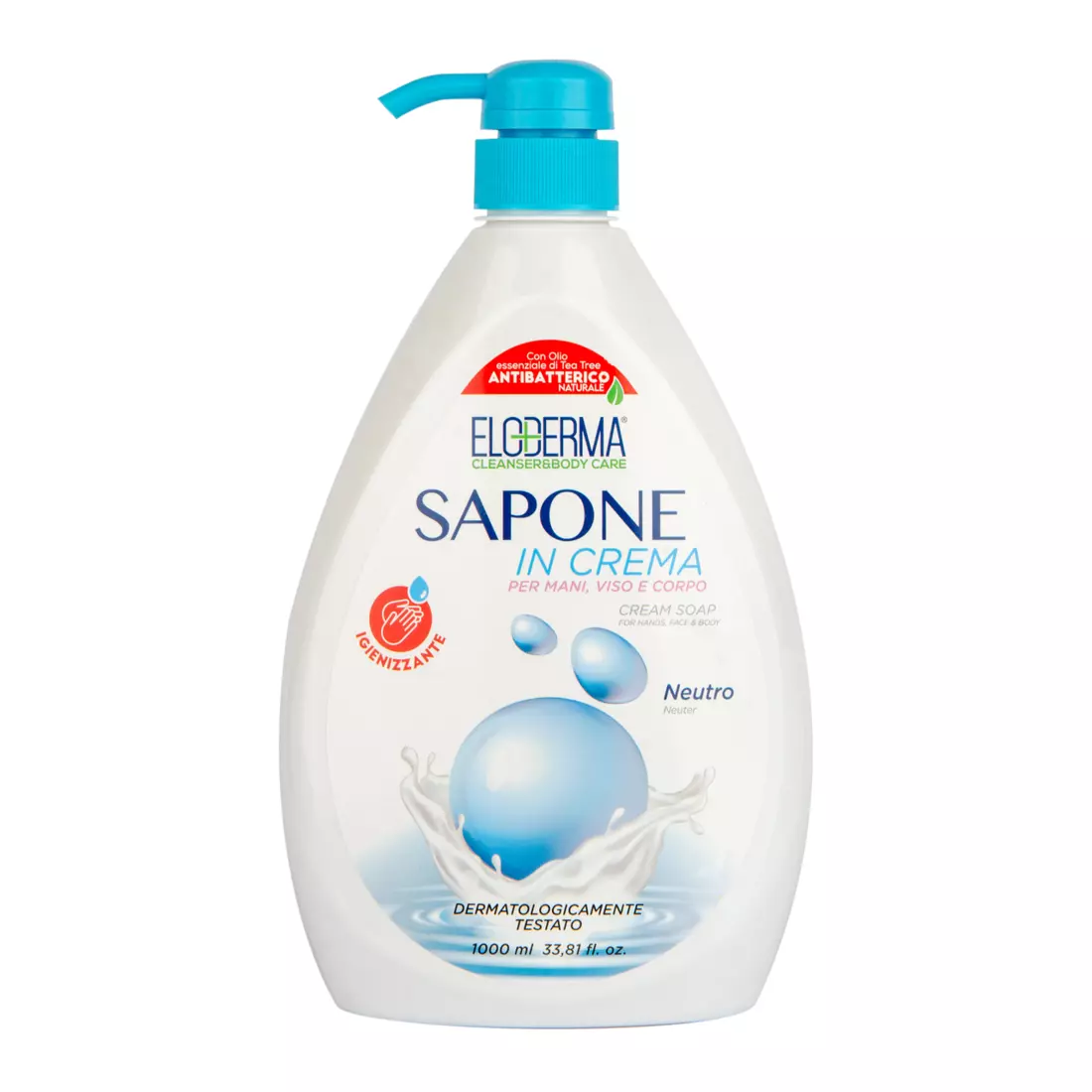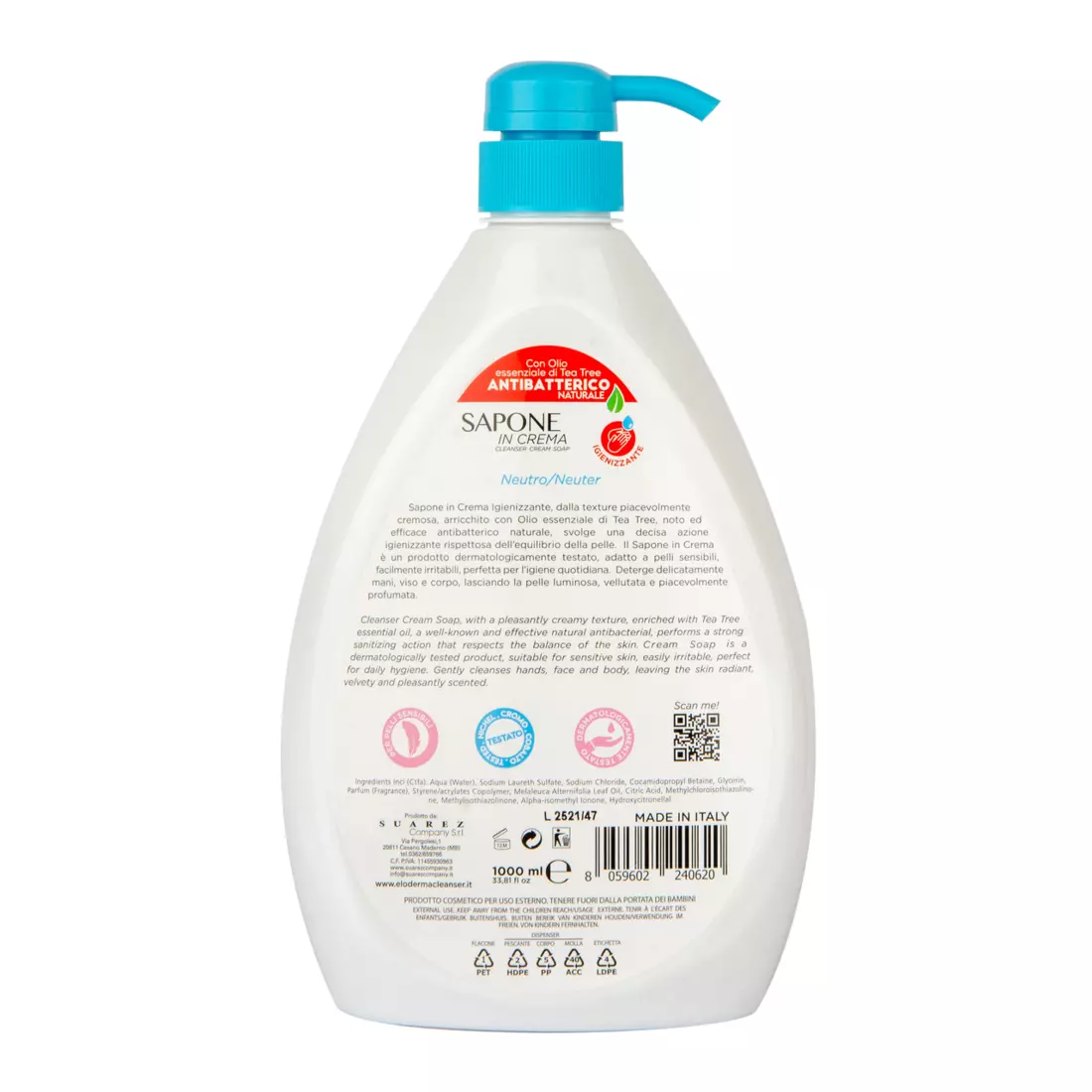 Крем-мило з приємною кремовою текстурою, збагачене ефірною олією чайного дерева, добре відомою як природний антибактеріальний засіб. Має сильну дезінфікуючу дію, дотримуючись балансу шкіри. Дерматологічно протестований продукт, підходить для чутливої шкіри. М’яко очищає руки, обличчя та тіло, роблячи шкіру сяючою, шовковистою та залишає приємний аромат.