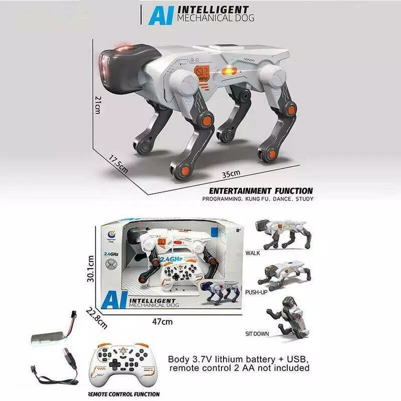 Пес на радіокеруванні 9514-02 (12) підсвічування, мелодії, танцює, відтискається від підлоги, “плаває”, програмування, акум. 3.7 V, в коробці