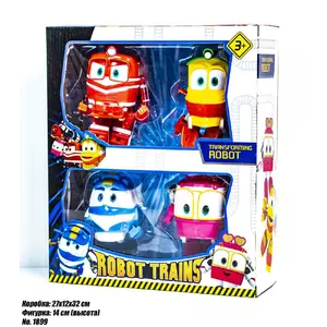 Мультик «Роботи поїзда» доставляє радість дітям різного віку. Кей, Альф і їх барвисті веселі друзі діляться епічними пригодами, які відзначають мужність, дитинство, вірність і гумор. Ігровий набір "Robot Trains" переносить події з мультика в реальну гру з набором справжніх якісних ігрових паровозиків. Все це відображає саме те, що діти бачать і представляють в своєму вигаданому світі. Кожна фігурка-паровозик це точна копія яка була показана в мультфільмі "Роботи Потяги". Паровозики виконані якісно і реалістично, трансформери паровозики можуть трансформуватися в робота і назад. Мають рухливі частини ніг, рук. Стиль і розфарбування іграшок відповідають мультику. Вони ідеального розміру для екшн-історій і дуже привабливі. Розмір фігурок 14 см Збери колекцію всіх фігурок: Кей, Альф, Віктор, Саллі, Каченя, Джіні, Максі, Дюк.