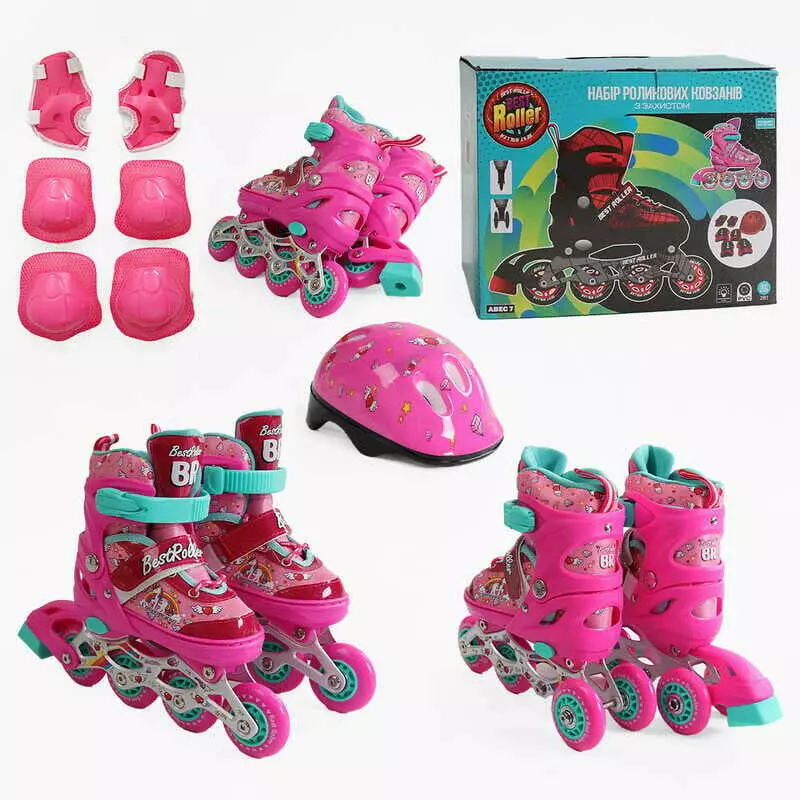 Ролики 10588-S розмір 28-31 (6) колеса PVC, устілка 17 - 19 см, ПЕРЕДНЄ КОЛЕСО СВІТЛО, d – 6.5 см, шолом - 21х17 см, захист, в коробці