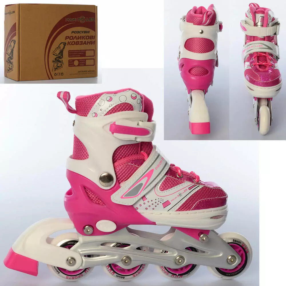 Фотография 1 товарной позиции интернет-магазина детских игрушек www.smarttoys.com.ua Ролики A 12100-8-S-P (31-34) розсув.,шнур+бакля, алюм.рама, кол.ПУ64мм.-1світло, рожевий, кор.