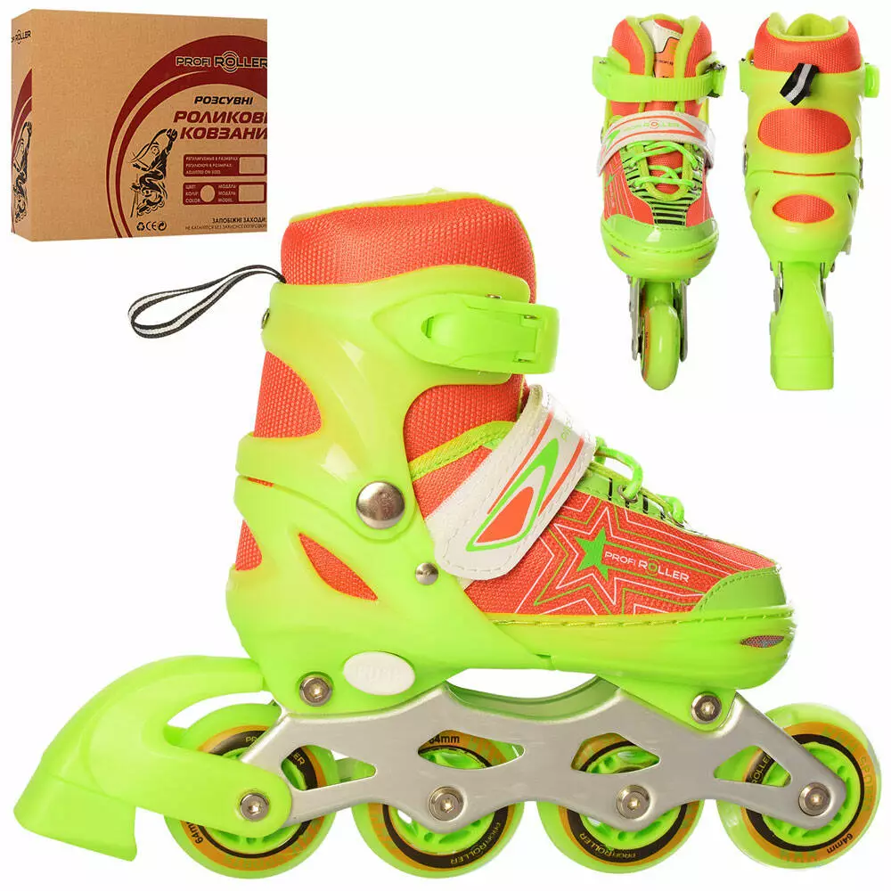 Ролики A 4138-S-GR(31-34) розсув., шнур.+бакля, ал.рама, кол.ПУ64мм-1світ., зелений, кор.,35-27-10см
