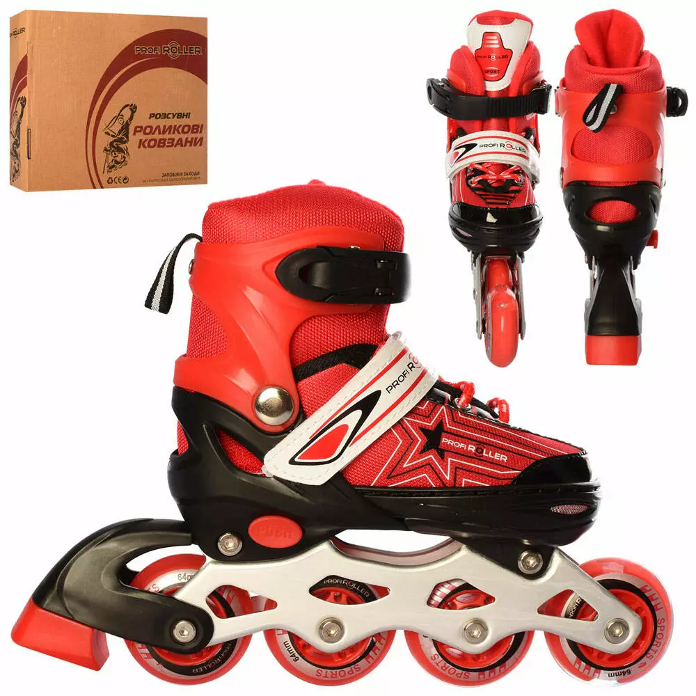 Ролики A 4138-S-R(31-34) розсув., шнур.+бакля, ал.рама, кол.ПУ64мм-1світ., червоний, кор.,35-27-10см