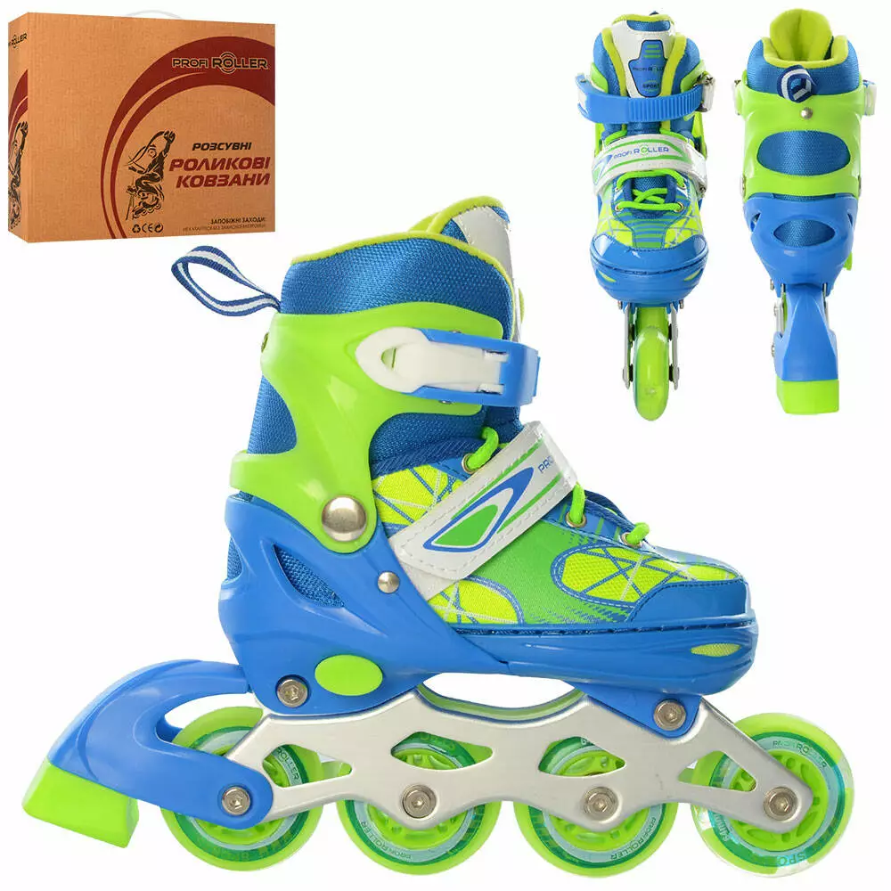 Ролики A 4141-S-BL(31-34) розсув., шнурівка+бакля, ал.рама, кол.ПУ70мм., 1 світло, синій, кор.