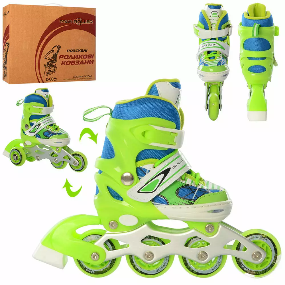 Фотография 1 товарной позиции интернет-магазина детских игрушек www.smarttoys.com.ua Ролики A 4141-XS-GR(27-30) розсув., шнур.+бакля, ал.рама, кол.ПУ64мм, 1світло, комбо, зелений, кор.