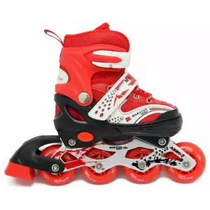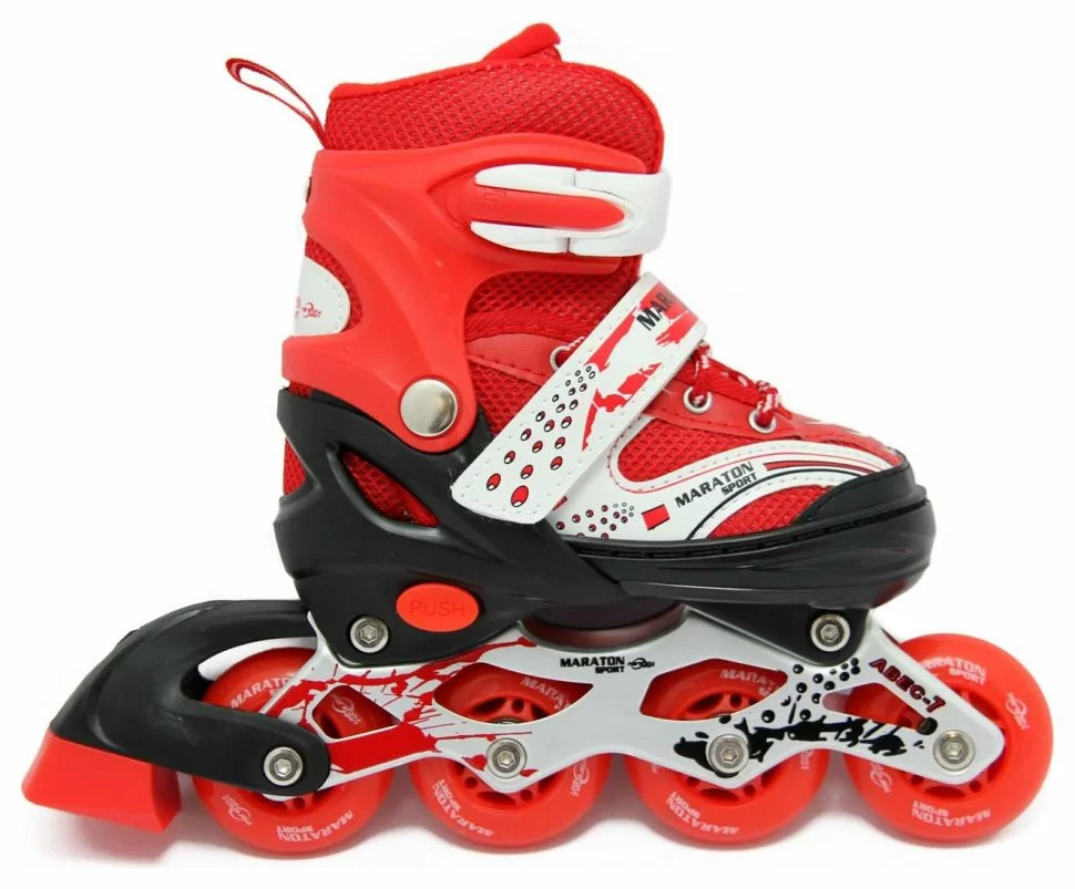 У кожній моделі кнопкова система регулювання на 4 повних розміру. Черевик: м'який, зі шкірозамінника з нубуком і сітчастим матеріалом. Високий підйом, твердий носок. Нейлонова оболонка, ТРЕ манжета. Рама: алюміній (міцна і легка), поліпшена бічна підтримка ноги. Жорсткі поліуретанові колеса - тихі при катанні. Надійні і швидкісні карбонові підшипники. Ширина коліс: 24 мм Передні колеса світяться. Фіксація ноги: бакля, шнурівка, липучка і п'ятковий ремінь. Ножні гальма на правому черевику.