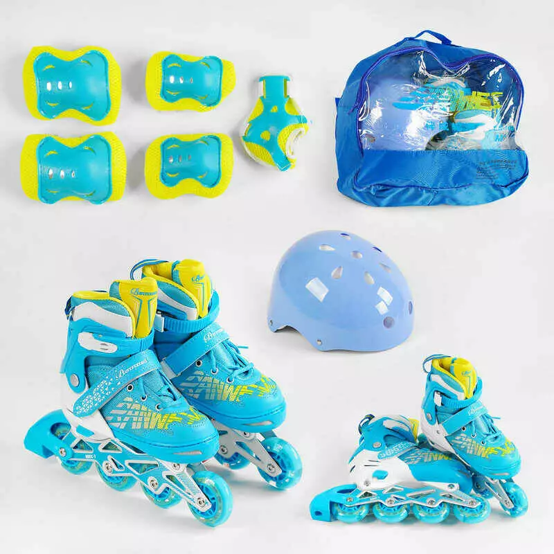 Ролики с захистом 6917-М розмір 35-38 (6) колір СИНІЙ, колеса PU, ПЕРЕДНЄ КОЛЕСО СВІТЛО, устілка 20-24 см, d колес – 6.5 см, в сумці