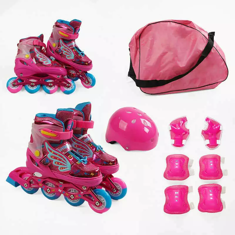Ролики с захистом SC-91300 М розмір 35-38 (6) колір РОЖЕВИЙ, колеса PU, ПЕРЕДНЄ КОЛЕСО СВІТЛО, устілка 21-24 см, d колес – 6.5 см, в сумці