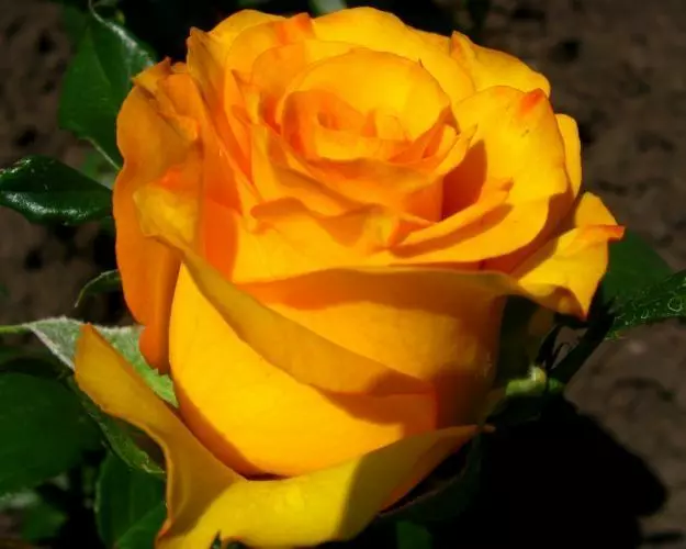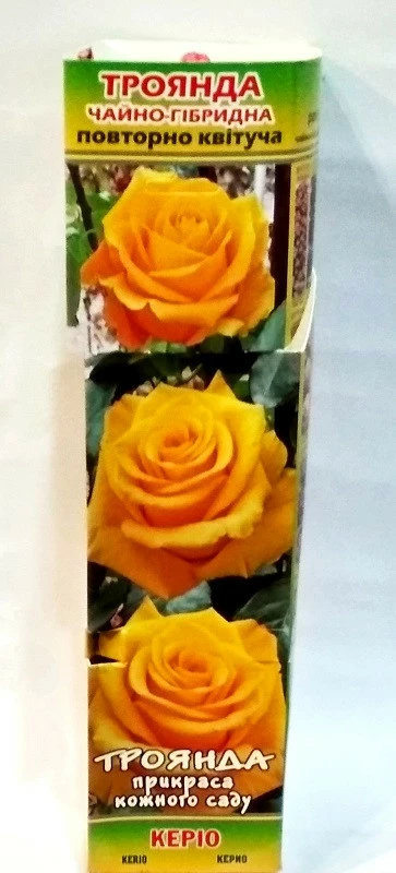 Роза "Керио" – настоящие украшение клумбы, озаряющее золотистым цветом всё вокруг. Керио выведен и зарегистрирован в 2002 году. Роза имеет слабо выраженный аромат, но цвет бутона и распустившегося цветка полностью это компенсирует. Жгучий ярко-желтый цвет лепестков, напоминает солнце. В раскрывающемся состоянии края лепестков имеют тонкую оранжевую полоску. Лепестки у розы Керио с четко очерченными краями, как будто резные, плотные. Необыкновенно яркий желтый цветок этого сорта будет четко виден даже с большого расстояния. Окрас на солнце почти не выгорает, сохраняя свежесть розы. Кусты у роз сорта Керио высокие, стройные, благодаря чему эти цветы идеально подходят для срезки. Колючесть средняя, букет таких роз можно без опаски держать в руках. Листва темно-зеленая, блестящая, выгодно подчеркивает цветок. Цветет роза Kerio одиночными цветками, иногда в соцветиях по 3-4 штуки. Цветение не однократное, продолжительное. Розы способны долгое время сохранять свежий вид в вазе. Сорт имеет хорошую зимостойкость, но при сильных холодах рекомендуется тщательное укрытие. А высокая устойчивость к болезням делает розы сорта Керио легкими в выращивании как опытными розоводами, так и новичками.