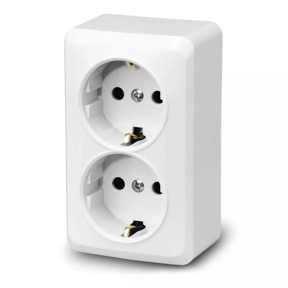 Розетка подвійна із заземленням зовнішнього монтажу, біла,