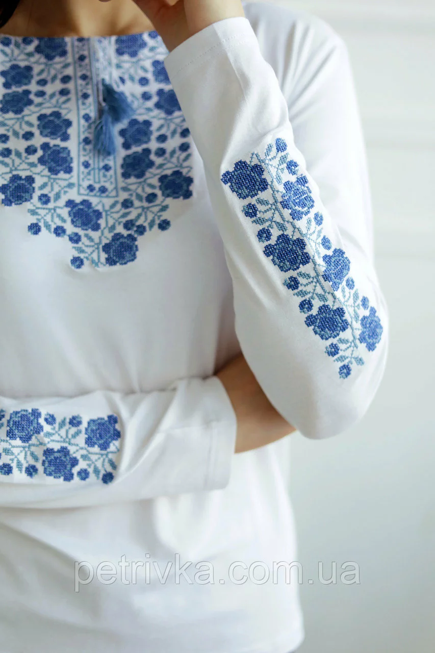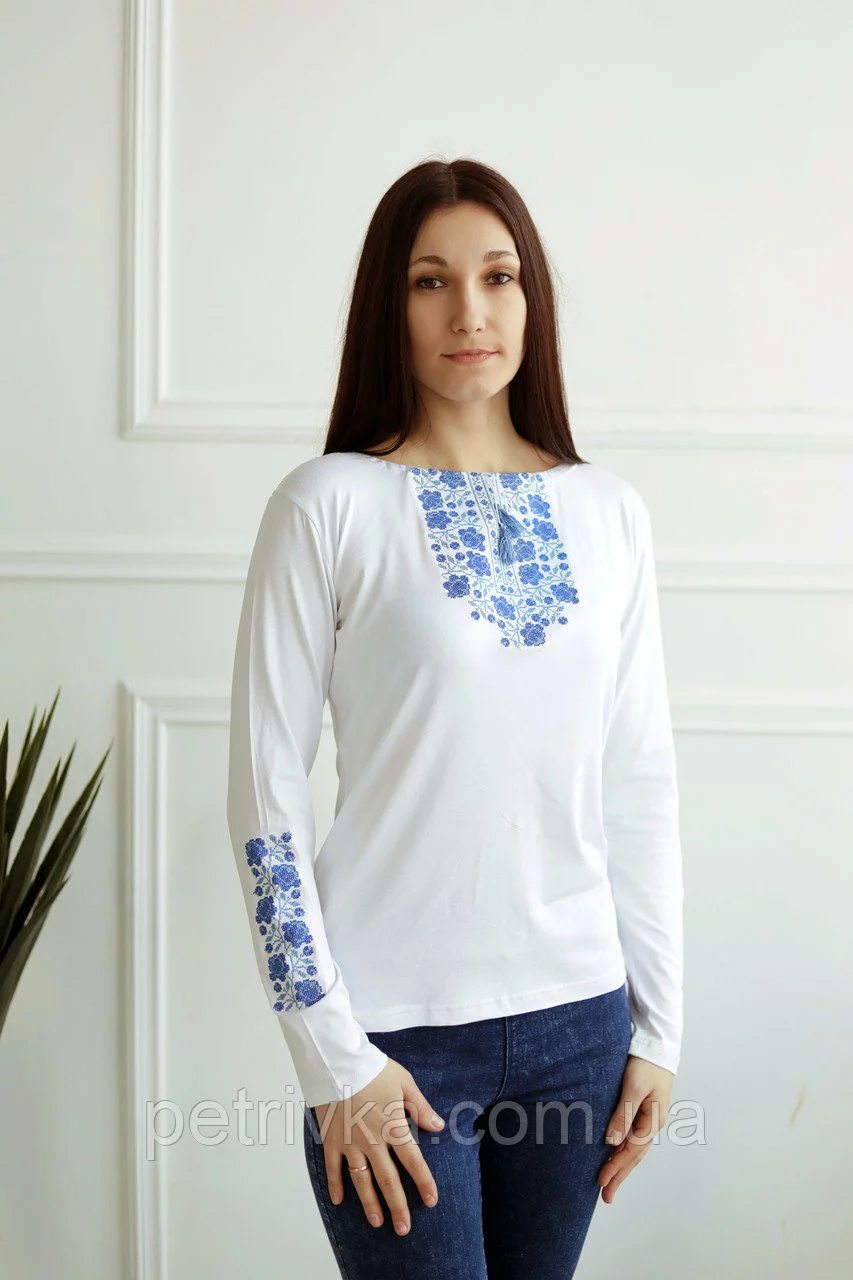 Розкішна вишита футболка з довгим рукавом