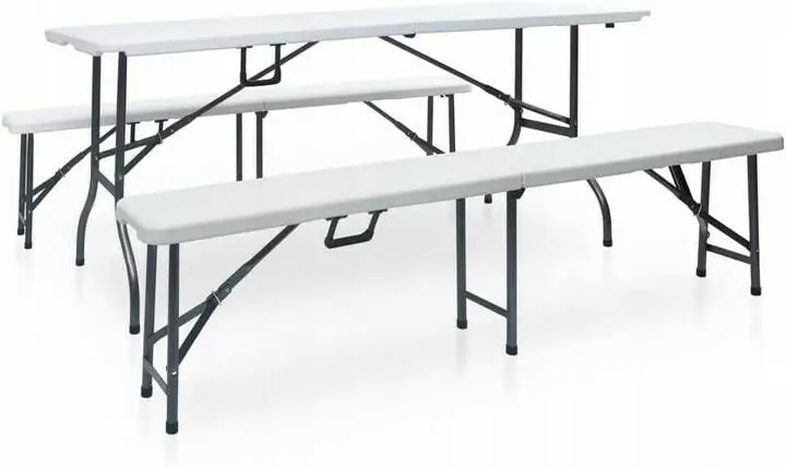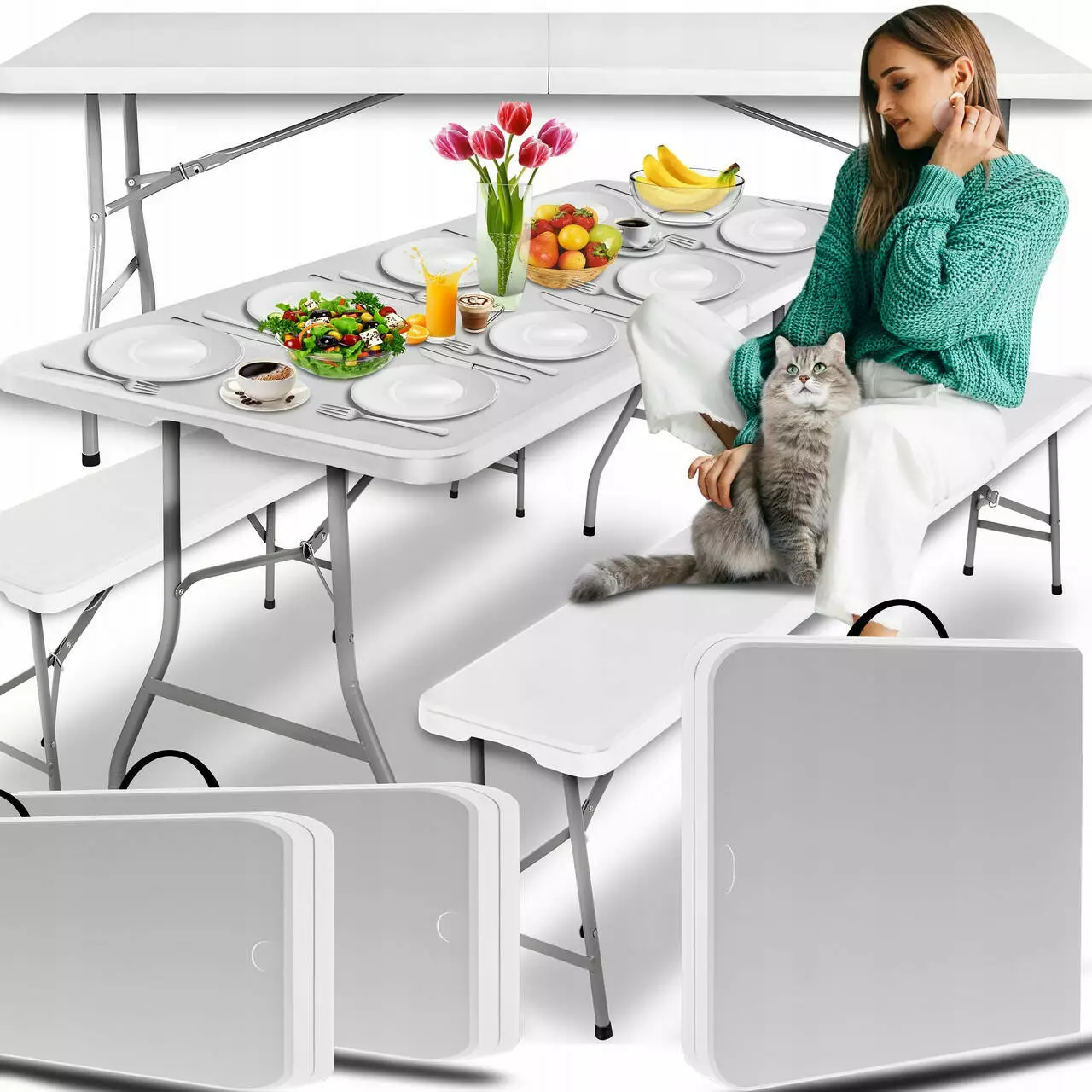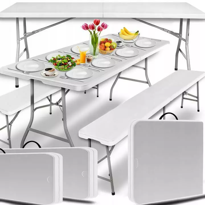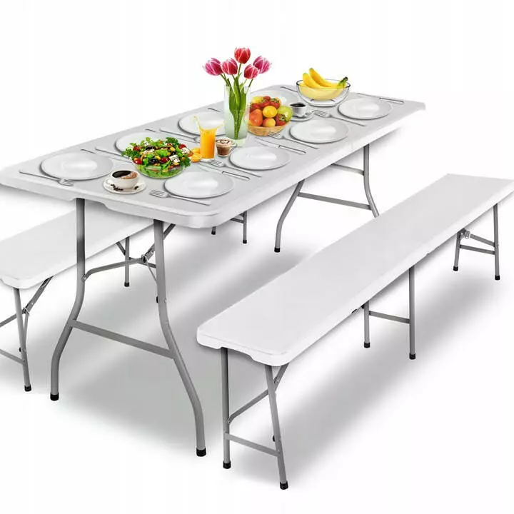 Представляємо унікальний набір: складаний садовий стіл завдовжки 180 см із двома лавками. Набір поєднує в собі функціональність обіднього столу з комфортом та зручністю, що робить його ідеальним вибором для будь-якого саду.