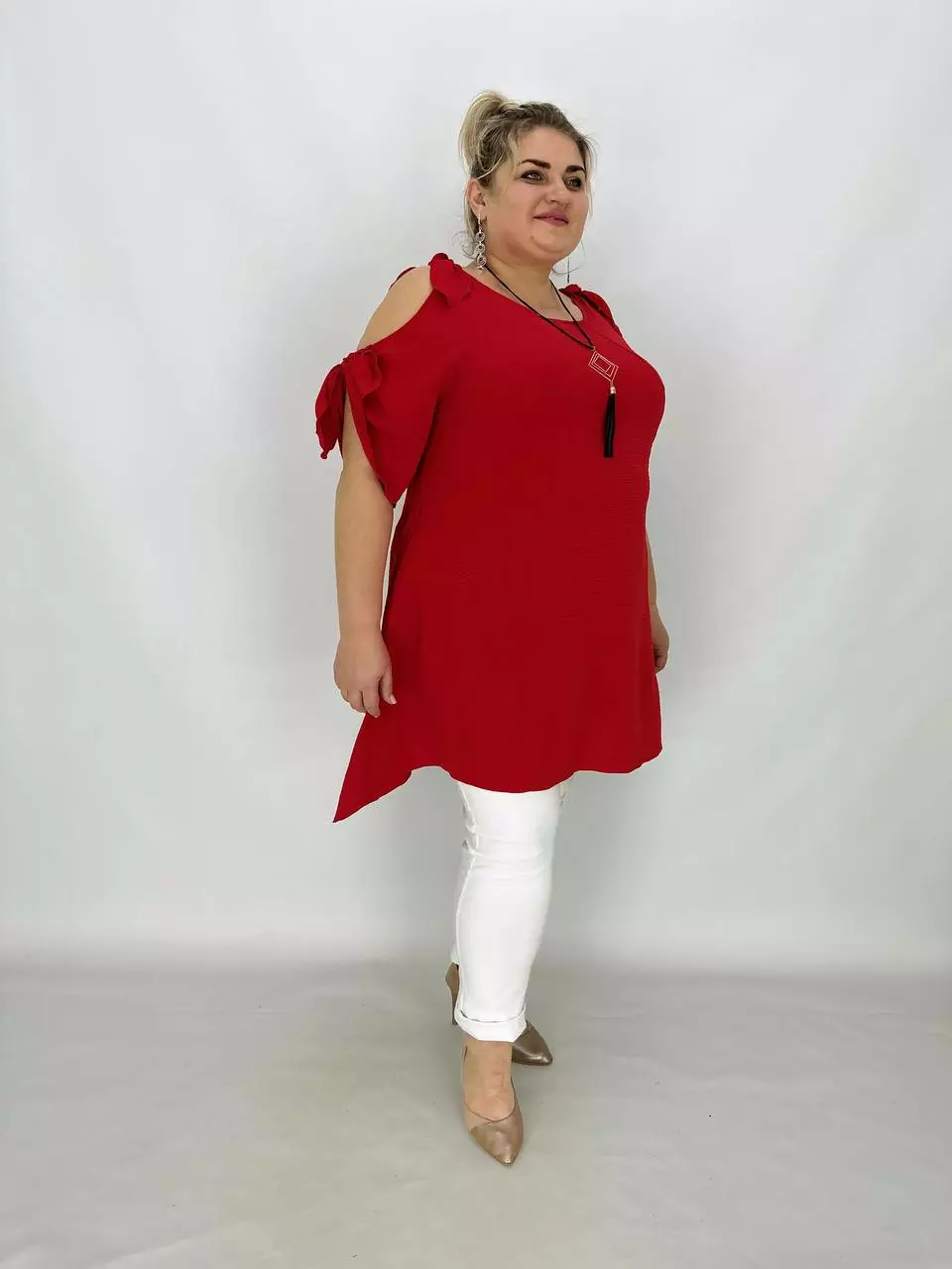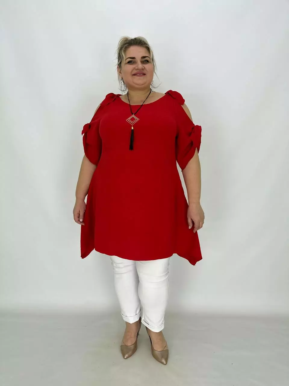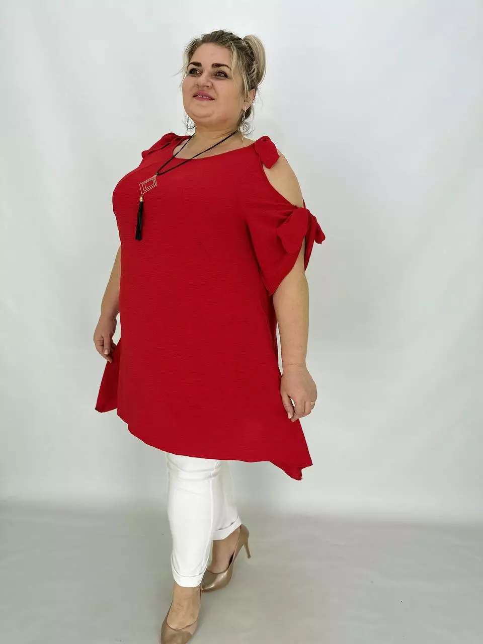 Туніка розкльошена з подовженими кутами, рукави з гумками,
