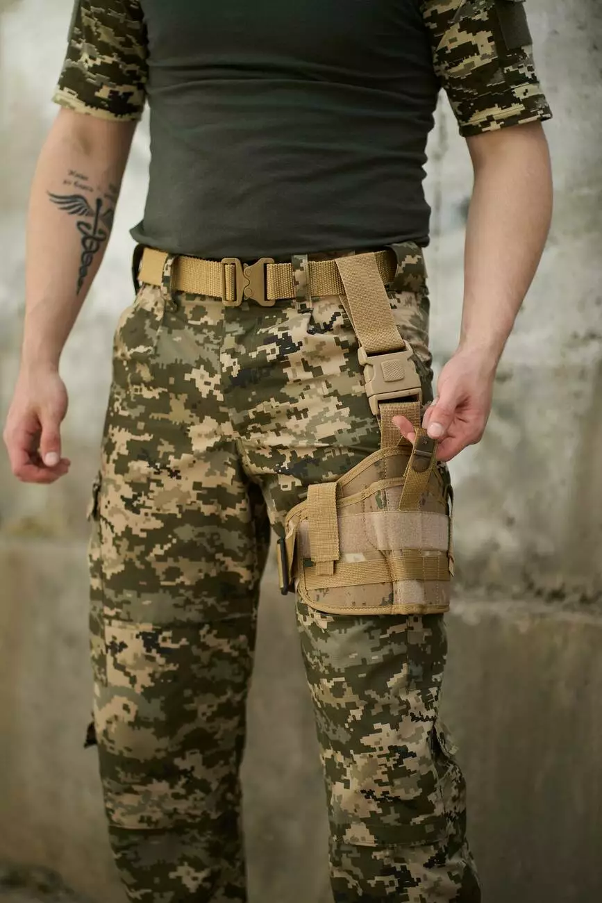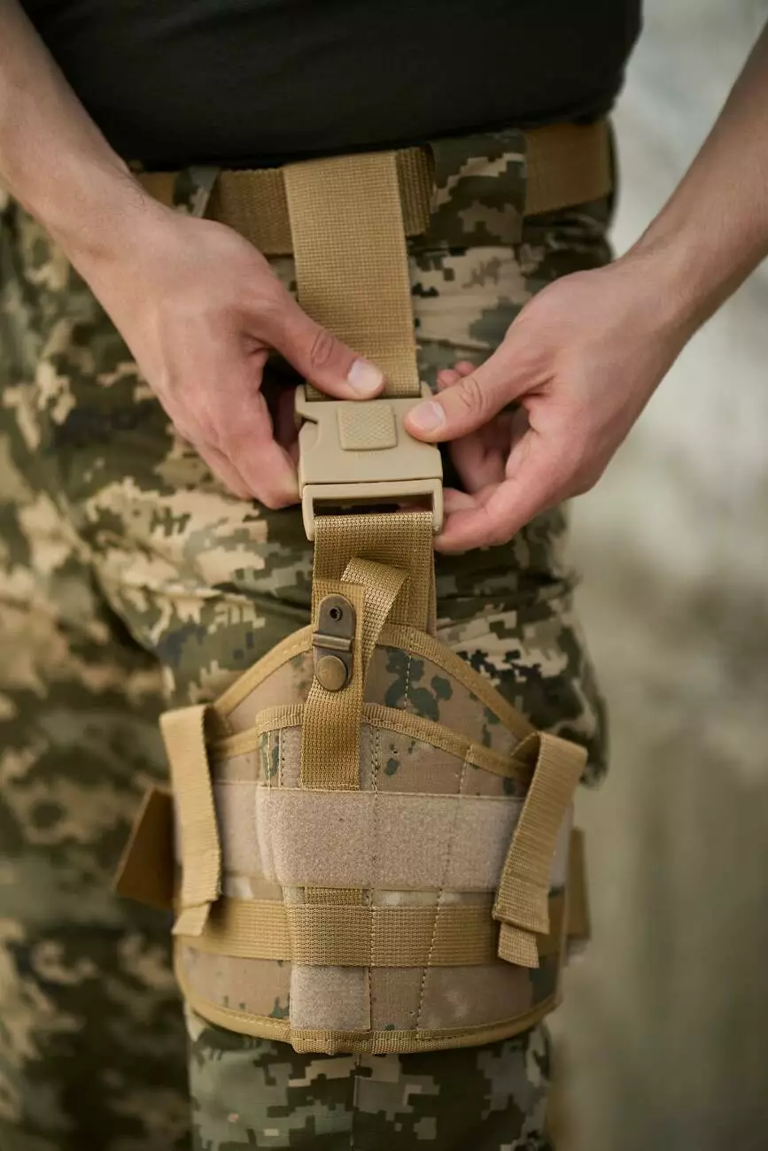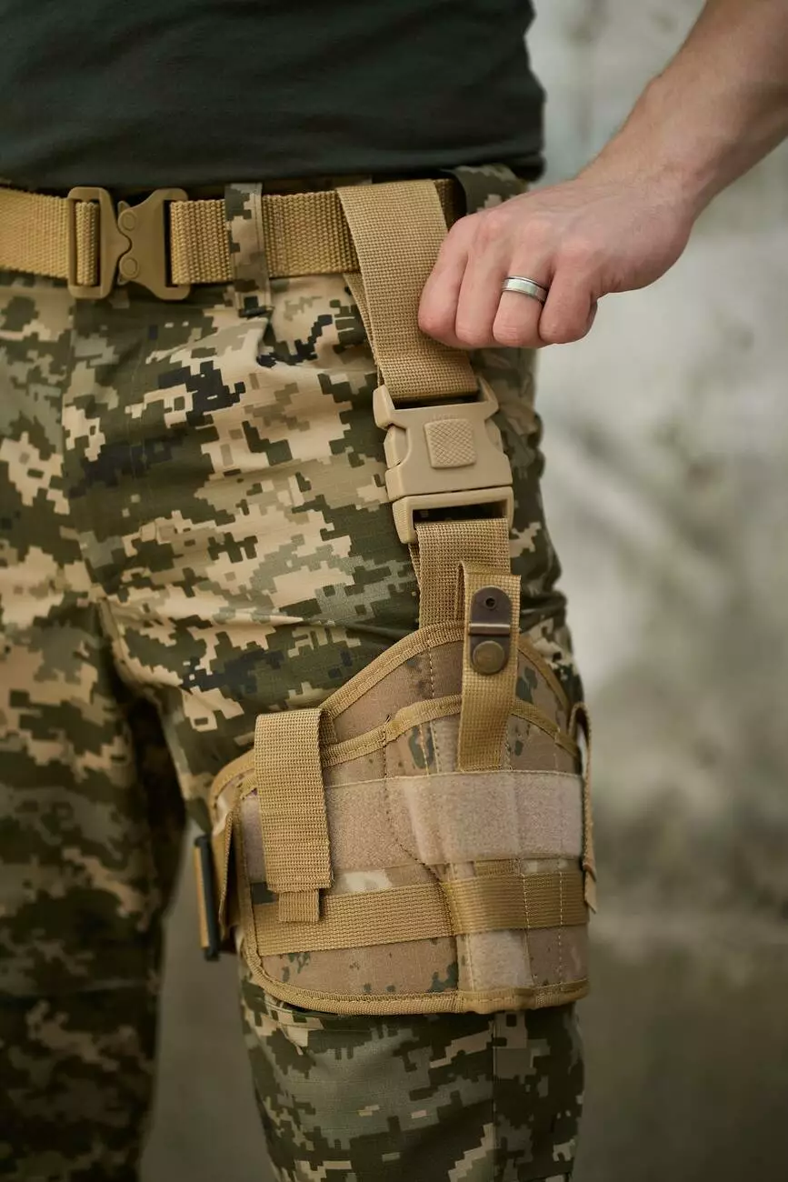 - До пояса кріпиться за допомогою ременя на швидкознімач з