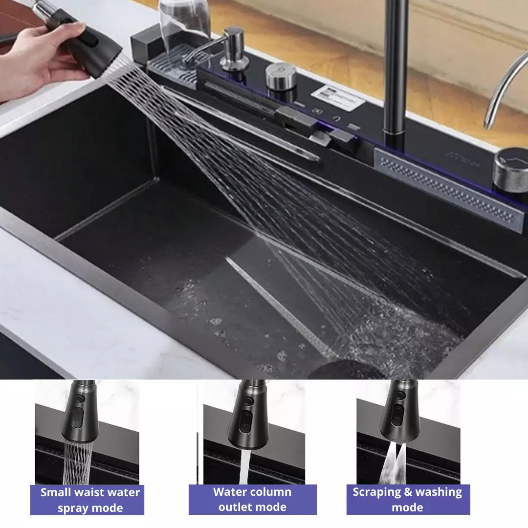 Оновіть свою кухню сучасною мийкою з нержавіючої сталі з висувним краном, розробленою для максимальної зручності, довговічності та сучасної функціональності. Ця інноваційна мийка покращує ваші щоденні кухонні процеси, пропонуючи інтелектуальні функції , які зроблять миття, чищення та приготування їжі легкими.