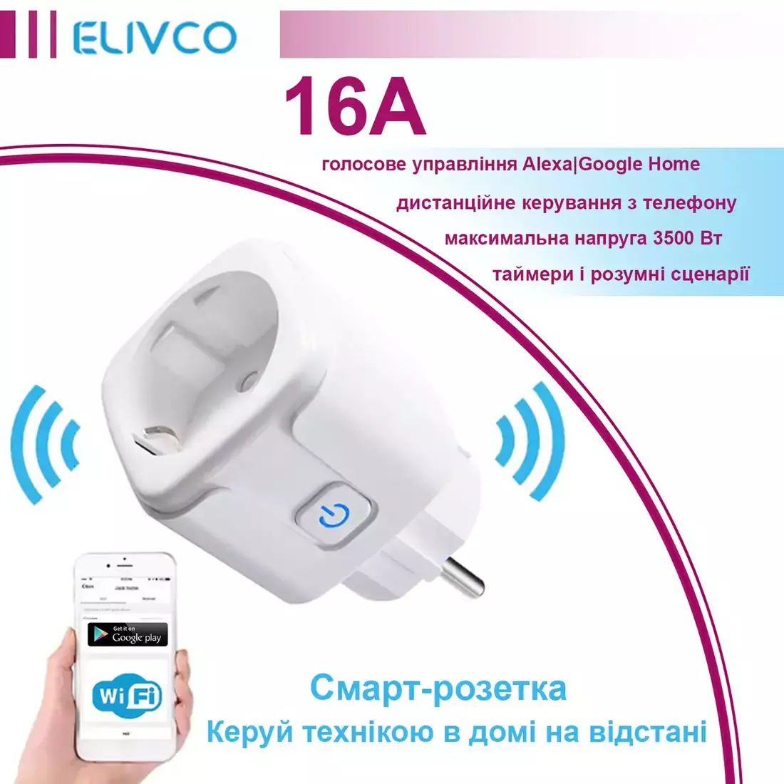 Розумна смарт розетка Elivco 16A з WI-FI підключенням до телефону