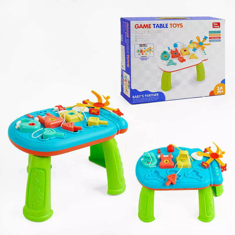 Ігровий музичний столик N 52200 (24) звук, підсвічування, замочки, ремінці, розетка, мелодії, кумедні звуки, в коробці