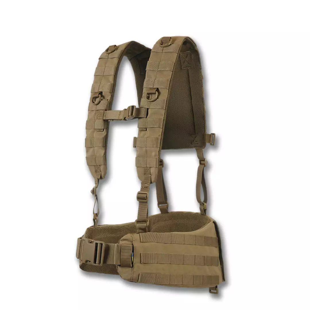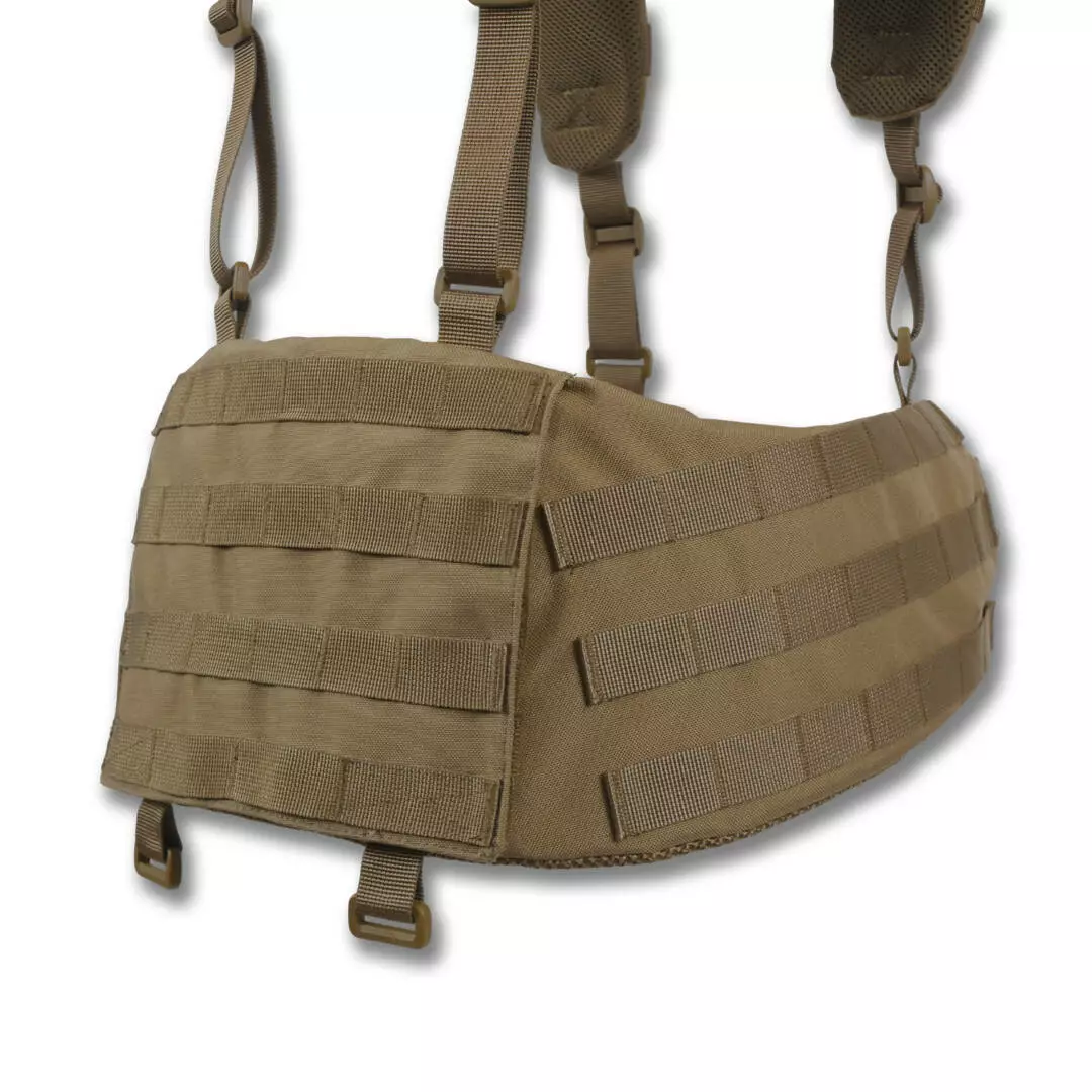 Конструкция. Плечевые лямки имеют рюкзачную конструкцию с ячейками MOLLE на спине для закрепления дополнительных итогов. Имеет внутренний слой полифома толщиной 5 мм и мягкую сетку для вентиляции. На лямках предусмотрено по 7 рядов MOLLE и нагрудный соединительный ремень на фастексе.