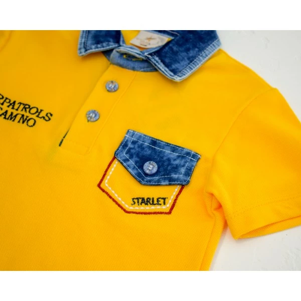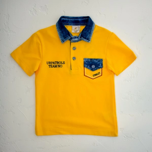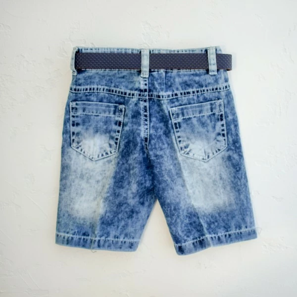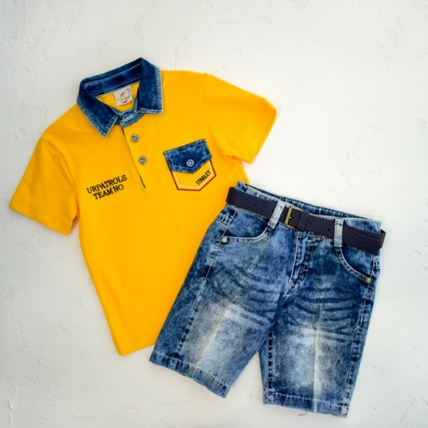 оригинальным воротником из джинсового материала и джинсовые шорты с