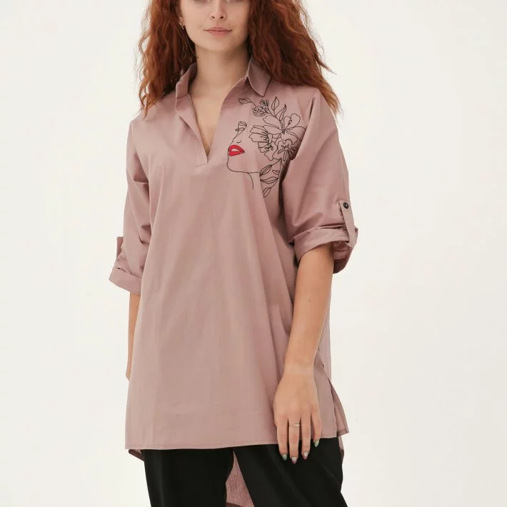 Сорочка-туніка оверсайз крою, декорована попереду вишивкою. При