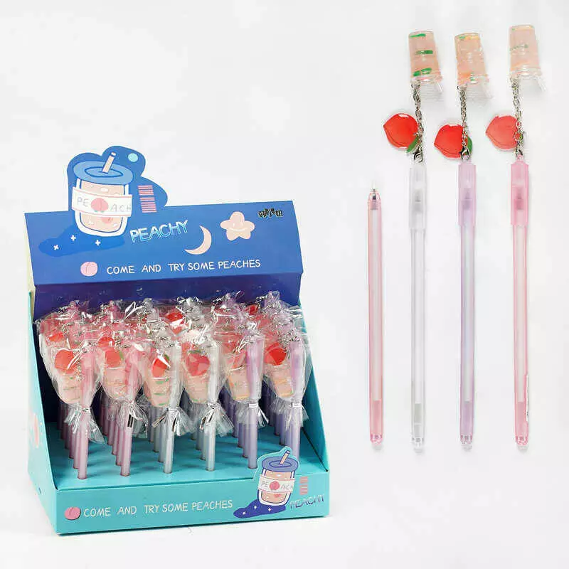 Ручка D 34820 (32) ЦІНА ЗА 36 ШТУК В БЛОЦІ, гелева, синя та чорна пасти, прикраса