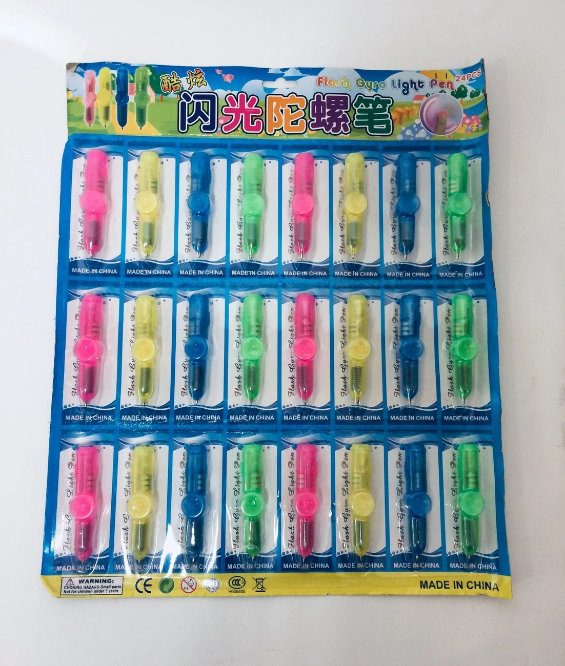Ручка зі світлодіодами зроблена з кольорового напівпрозорого пластику. Посередині ручки зроблено дві присоски, за допомогою яких ручку зручно закріпити на рівній поверхні. LED діоди включаються за допомогою важеля. Довжина ручки на присосці з діодами становить 7.5 см
