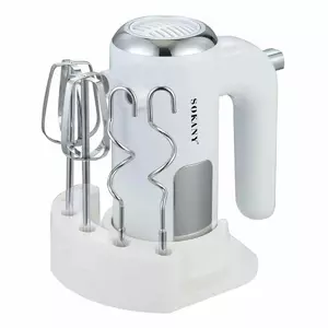 Ручний міксер 2 в 1 SOKANY SK-02025 призначений для базових кулінарних завдань, пов’язаних зі змішуванням і збиванням інгредієнтів. Потужність пристрою становить 800 Вт, а п’ять швидкісних режимів дозволяють обирати оптимальний темп роботи відповідно до консистенції продуктів. У комплект входять дві насадки — для збивання та замішування тіста.