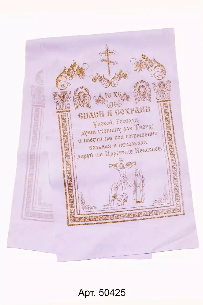 Ритуальний рушник з габардину гліттер "Врятуй і збережи" розмір 36*155см, 10 шт в упаковці.