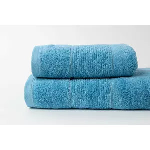 Рушник махровий NOBLE Преміум" з декоративним бордюром, колір блакитний. Рушник виготовлено з 100% високоякісної бавовни, гребінна пряжа.. Край рушника з двох сторін прикрашений дизайнерським бордюром шириною 9 см. Він не линяє, стійкий до стирання і прання. Ідеально підійде для SPA центрів, салонів краси, готелів, спортивних баз. Цей рушник є найкращим варіантом для подарунку Вашим близьким чи знайомим.