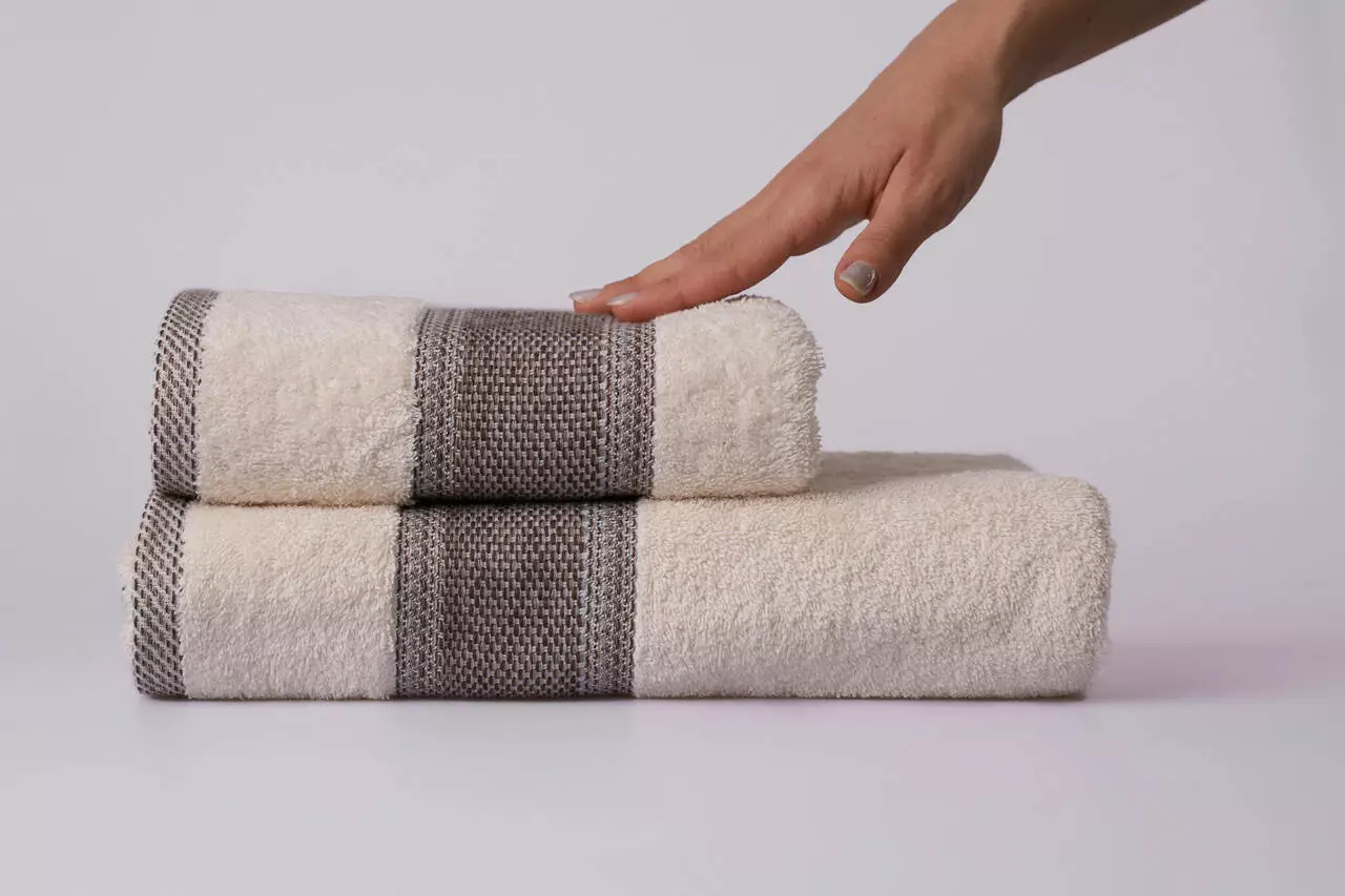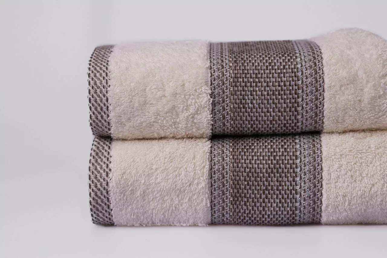 Рушник  махровий "Преміум" з декоративним бордюром, колір молочний. Рушник виготовлено з 100% високоякісної бавовни. Край рушника з двох сторін прикрашений дизайнерським бордюром шириною 9 см. Він не линяє, стійкий до стирання і прання. Ідеально підійде для SPA центрів, салонів краси, готелів, спортивних баз. Цей рушник є найкращим варіантом для подарунку Вашим близьким чи знайомим.