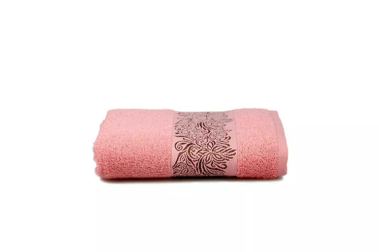 Махровий гладкофарбований рушник з рослинним орнаментом
