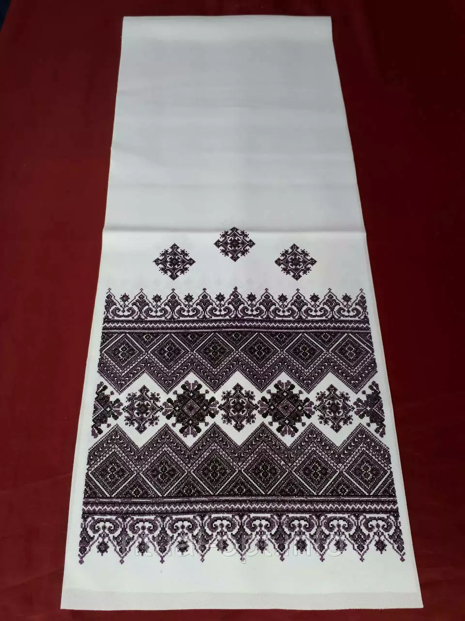 Рушник на хрест орнамент,Колір фіолетовий(темний).Розмір 150 на 30.Приємний відтінок.Повнокольоровий якісний друк з глітером "золото".