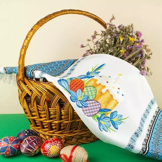 Який Великдень без пасхального хліба і писанок? Це символи, які вже багато років супроводжують це свято. Ми створили композицію з смачненької паски і писанок з традиційними орнаментами, та першими весняними квітами, вишили її на рушнику, який неодмінно прекрасить вашу пасхальну корзину.
