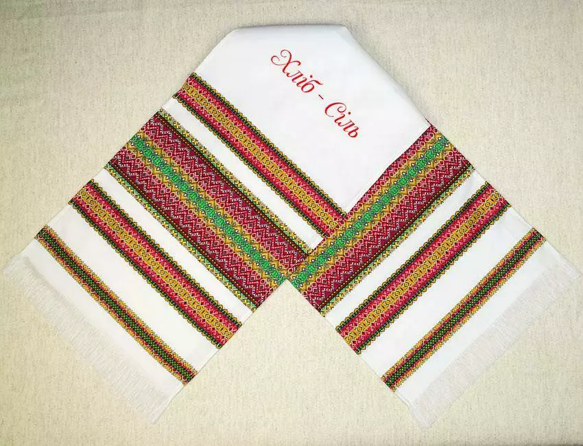 Весільний рушник з вишивкою "На щастя. На частку", який часто використовується в українських обрядах.