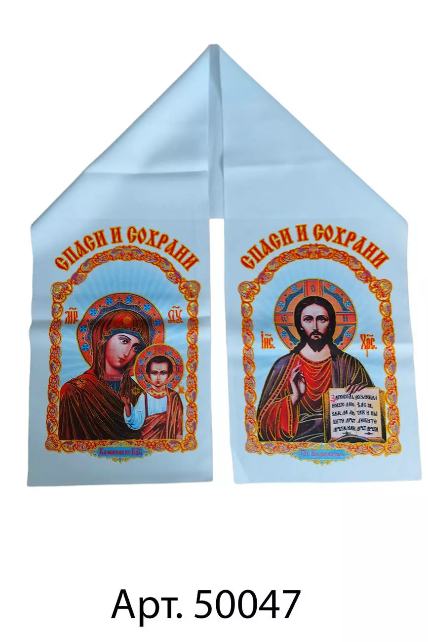 Ритуальний рушник під ікону з габардину "Врятуй і збережи" , 10 шт в упаковці.