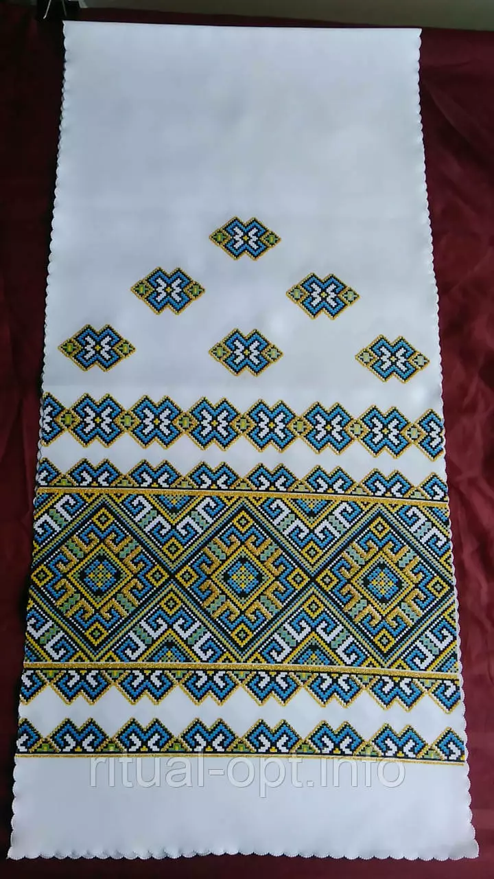 Матеріал: габардин.Розмір 160 на 35 сантиметрів.Повнокольоровий друк з глітером(золото).