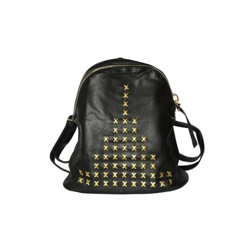 Фотография 1 товарной позиции интернет-магазина детских игрушек www.smarttoys.com.ua Рюкзак чорний кожзам із золотими заклепками 38*28 см 7279 (583)